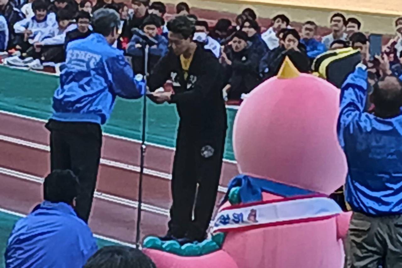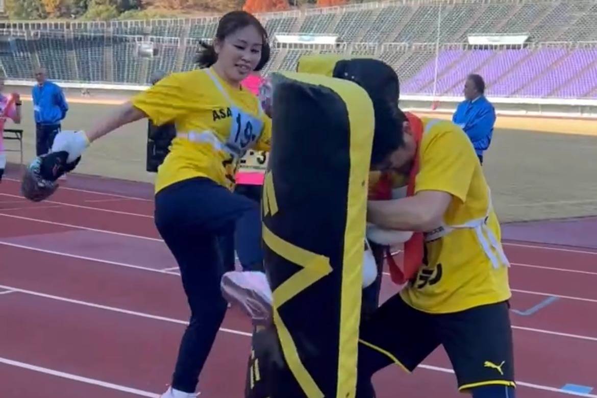 先日12月7日に安佐南区の広域公園で行われた、第26回安佐南区交流駅伝にリーゾスメンバーで参加してきました。6人1チームで1.2.3㎞を各自担当し全12㎞を走るという内容、リーゾスからは2チーム12名が参加しました。ほぼ全員がマラソン未経験、年齢も性別もバラバラの混合チームで挑みました。1チーム目の「チームRISUS」は1時間1分という好タイム、マラソン初心者達でこのタイムを出せたのは日頃のキックボクシングエクササイズのたまものでしょう。2チーム目の「戸島の左フック」は特別賞狙いでグローブをはめタスキを渡すときにミット打ちをして交代というパフォーマンスを披露してきました。結局最後はゴールで2チームの11人全員をアンカーの戸島が左フックで倒すという、メンバーが即興で考えたパフォーマンスで締めくくり特別賞をいただきました。